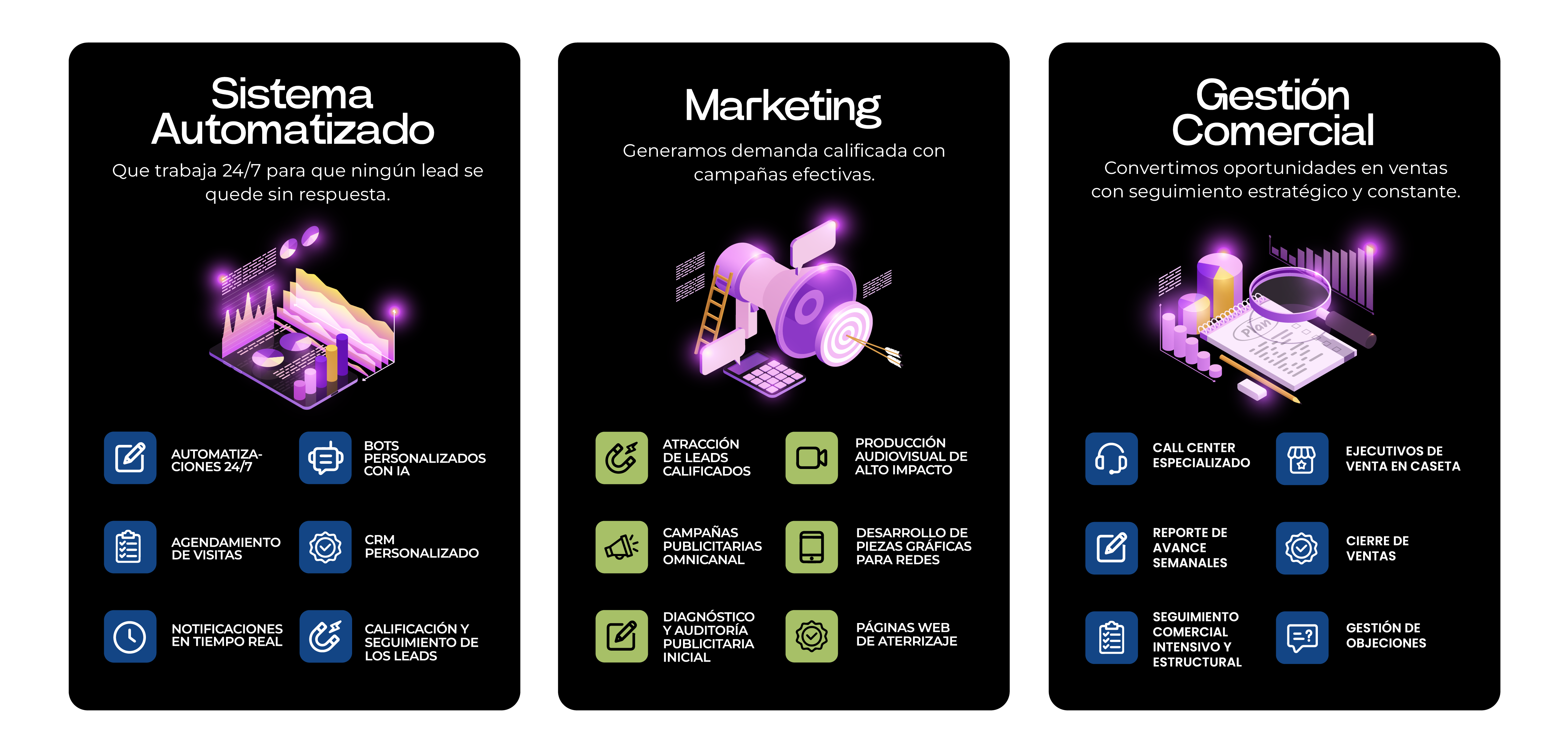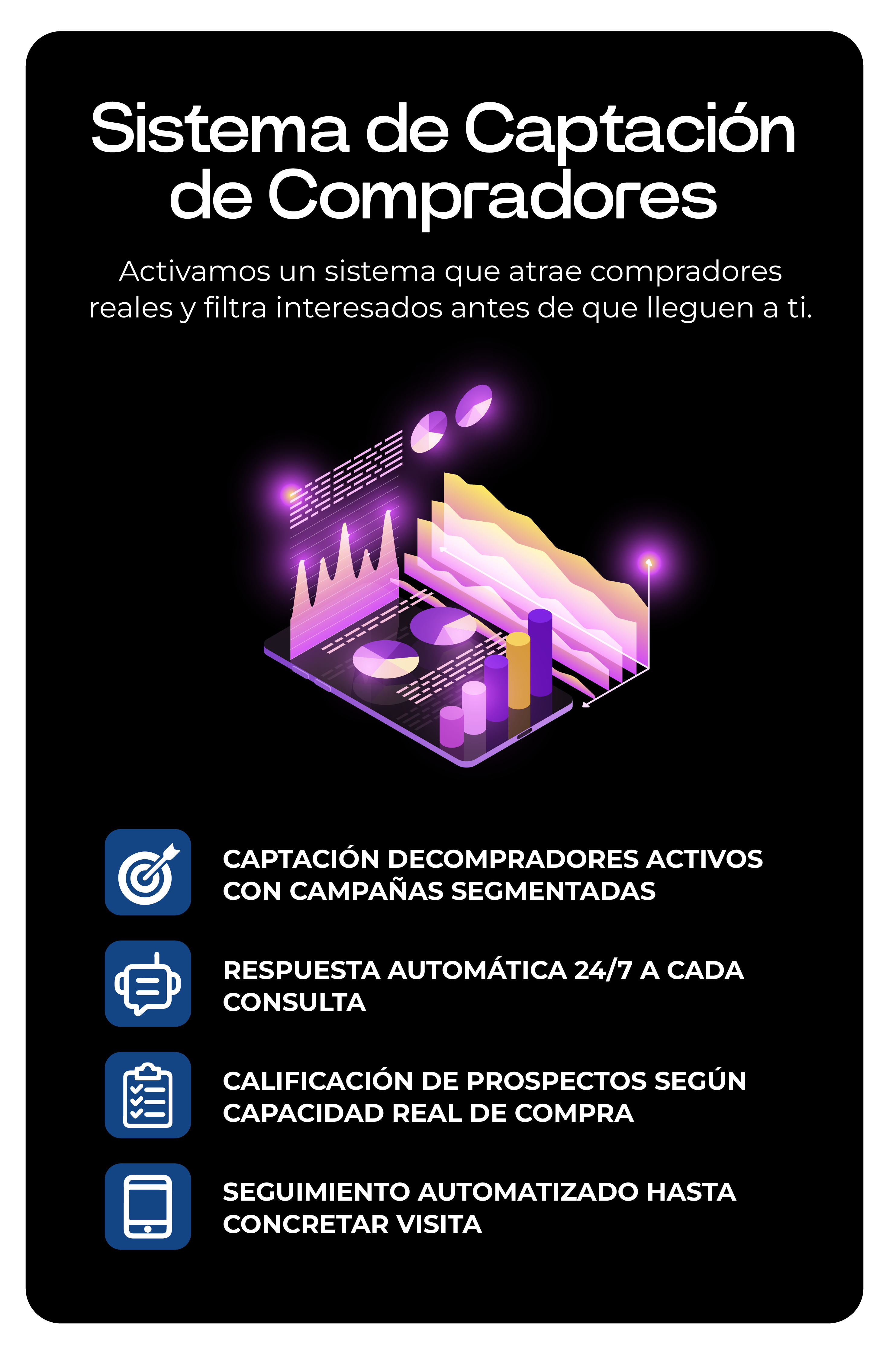 - Seguimiento personalizado y atención 24/7 a leads